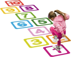 Hüppamine nummerdatud väljade vahel parandab motoorikat ja tasakaalu – ideaalne keksumänguks.