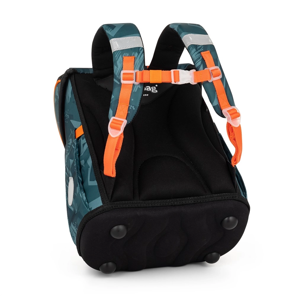 Ohutust tõstavad helkurelemendid ja metallist klamber reflektoriga. Tugev põhi kaitseb sisu ümberminemise ja laialipillamise eest, lisakonksud võimaldavad rihmade paremat kinnitust. Tänu laiadele pehmendatud rihmadele jaotab kohver kaalu ühtlaselt ja säästab laste õlgu.