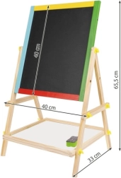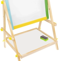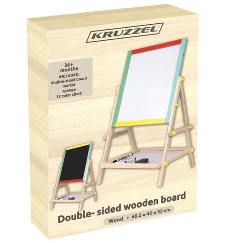 Loominguline ja ohutu kahepoolne 2‑in‑1 tahvel väikestele kunstnikele – ühel pool kriiditahvel, teisel pool kuivkustutatav ja magnetiline. Tänu pööramehhanismile, tugevale puidust konstruktsioonile ja tarvikute riiulile arendab kujutlusvõimet, õppimist ja peenmotoorikat. Komplektis on kõik koheseks lõbuks: kriidid, marker ja käsn.