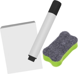 - Kahepoolne tahvel, marker, käsn, värvilised kriidid, värviline kinkepakend, pruun transpordikarp