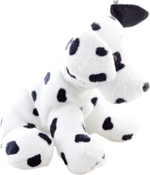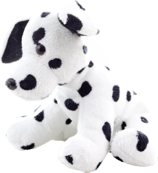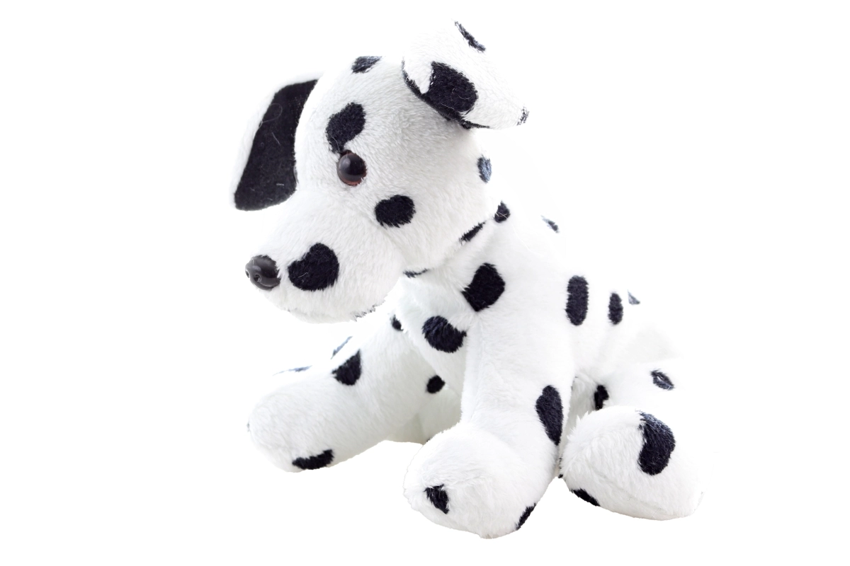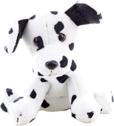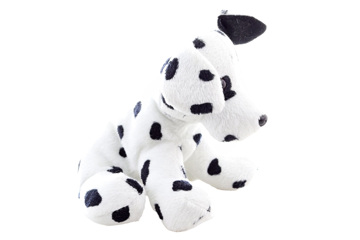 See plüüsist dalmaatsia koer paistab silma realistliku teostusega: valge keha mustade täppidega, mistõttu on see ideaalne mänguasi lastele.