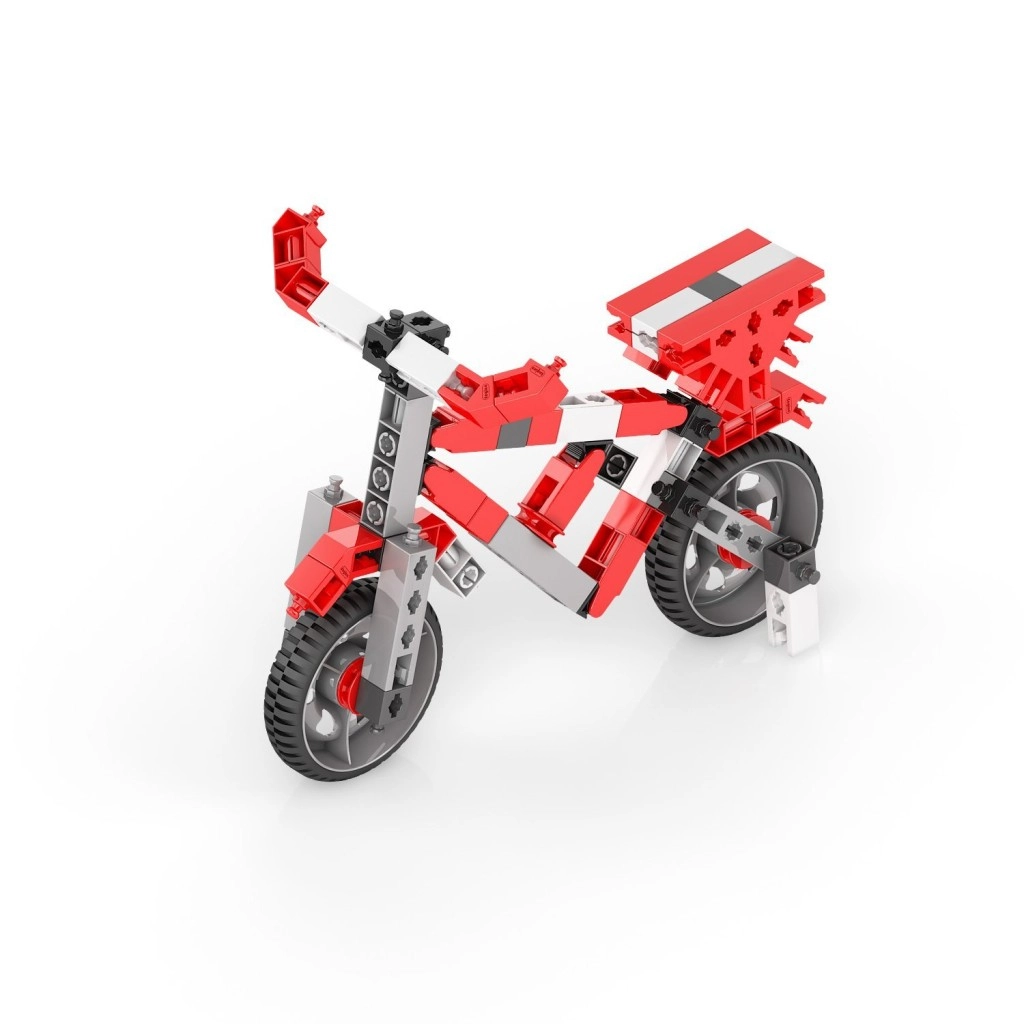 Arendage laste loovust ja käelist osavust vastupidava ENGINO Creative Builderi komplektiga. Üksikosad klõpsuvad lihtsalt kokku ning neid saab kiiresti ümber ehitada uueks mudeliks – kiirautost mootorratta ja lennukini. Tänu suunavalikuga mootorile hakkavad teie loomingud tõepoolest liikuma.
