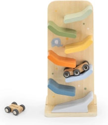 Värviline kaldteedega rada koos väikese autoga innustab korduvaks mänguks, tugevdab tähelepanu, koordineerimist ning põhjus-tagajärg seoste mõistmist.
