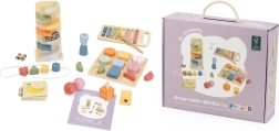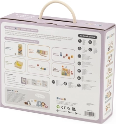 Ohutu puidust teostus siledate servadega ja pastelsed toonid kutsuvad avastama, treenivad kannatlikkust, keskendumist ja loogilist mõtlemist. Komplekt sobib suurepäraselt nii kingituseks kui ka sissejuhatuseks tähenduslikult sisukate Montessori-stiilis tegevuste maailma.