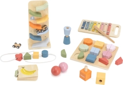 See hoolikalt kokku pandud VIGA komplekt vanusele 18–24 kuud ühendab armastatud puidust mänguasjad ühtseks tervikuks. Komplektis on ksülofon esimesteks muusikakatsetusteks, lõbus autorada, kujundipusle, keeratavad detailid, läbipõimitavad kujundid ning puidust pildiraamat puuviljadega. Iga element on loodud toetama lapse loomulikku arengut läbi mängu.
