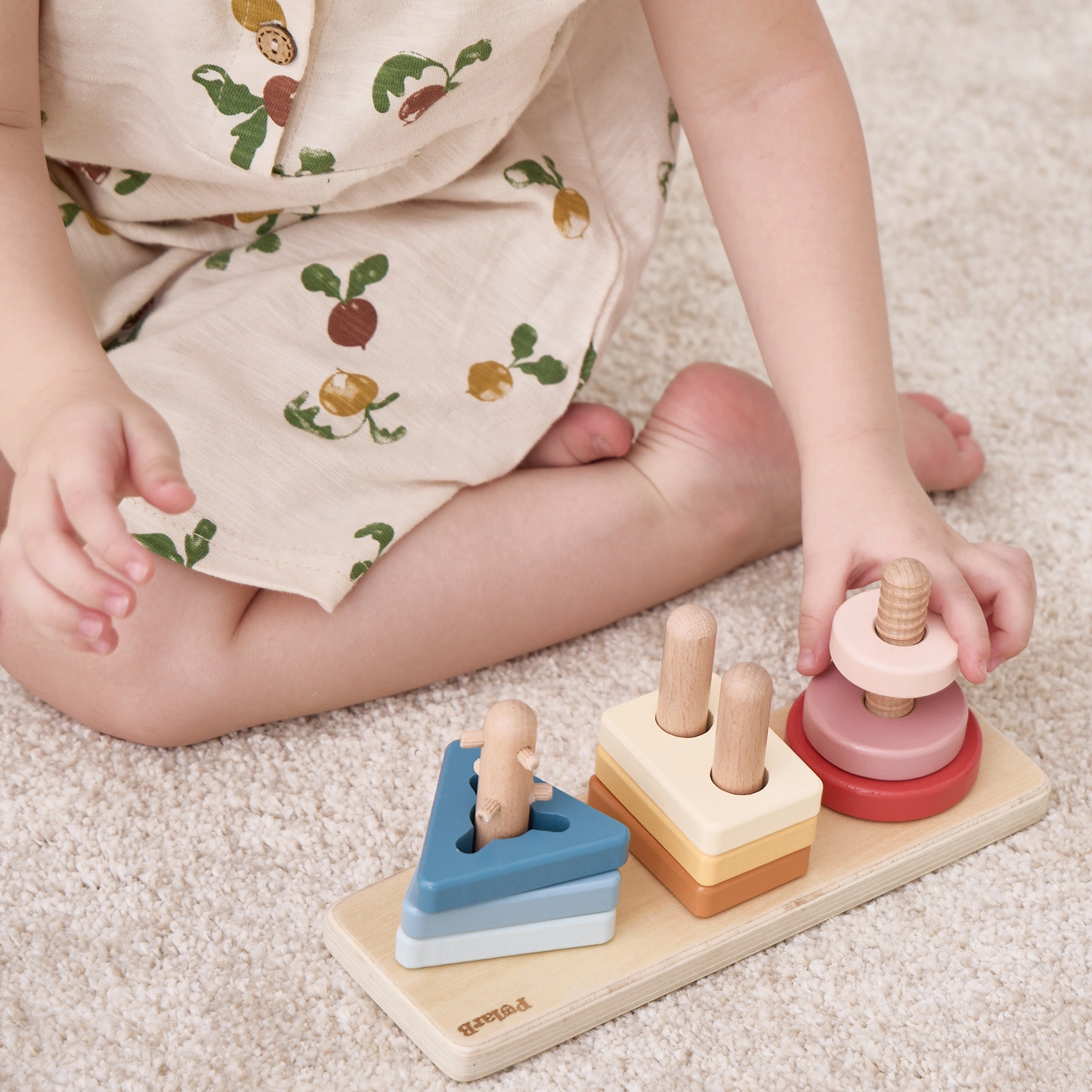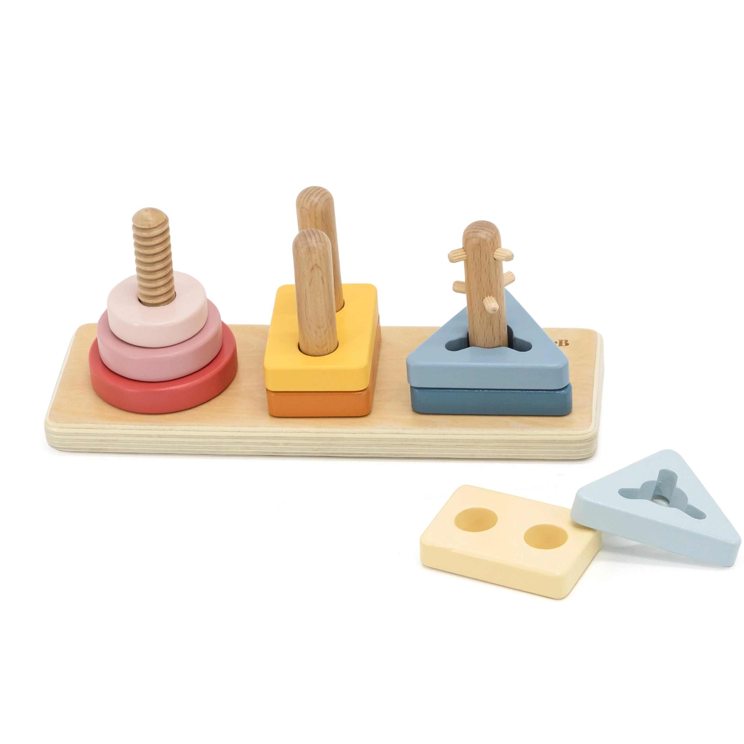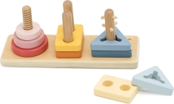 Puidust tükid ja pulgad õpetavad kujude ja värvide äratundmist, toetavad ruumilist mõtlemist ning loogilist sorteerimist. Ideaalne esimesed sammud geomeetrias.