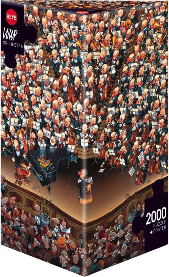 Avasta värske huumor ja detailne joonistus pusles HEYE Orkester 2000 tükki, mille autor on tunnustatud karikaturist Loup. Kaasasoleva plakati abil orienteerud hõlpsalt ka kõige peenemates nüanssides ning valmispildi mõõt ca 97 × 69 cm kaunistab su interjööri.