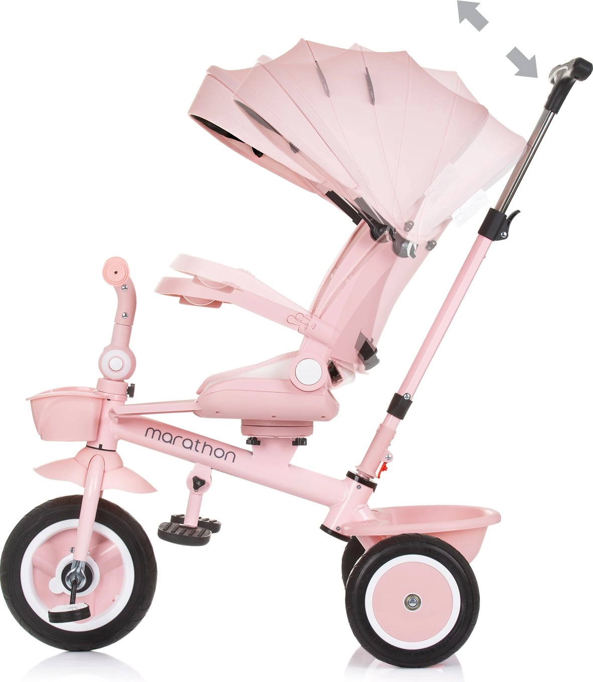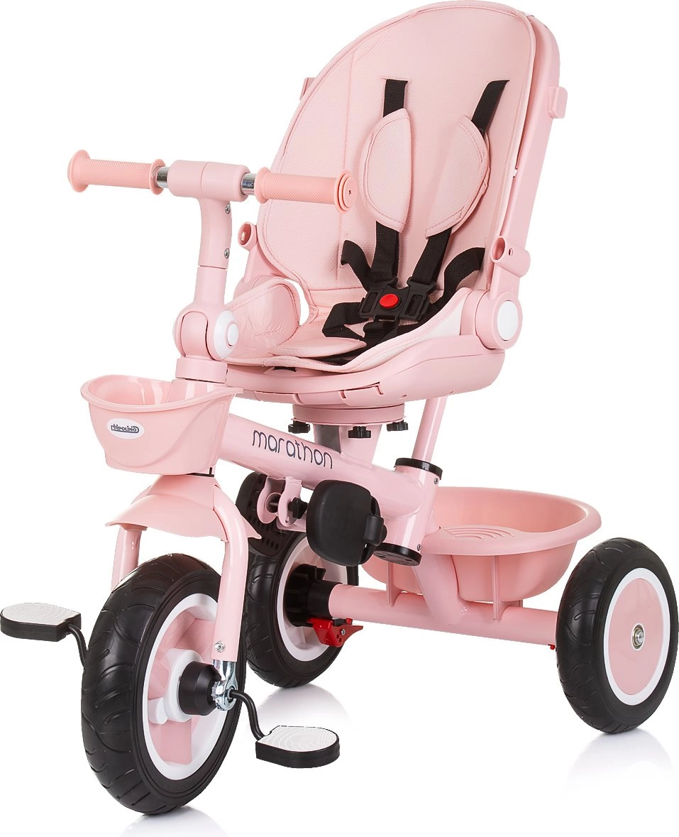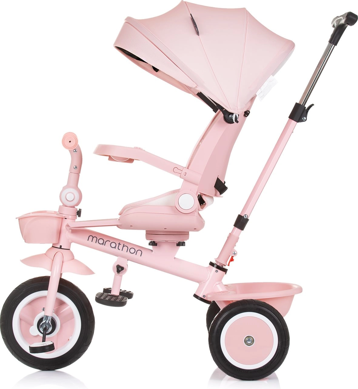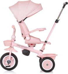 Kolmerattaline vankrikatus Marathon 2in1 Flamingo on loodud pakkuma maksimaalset mugavust ja turvalisust nii lastele kui ka vanematele tänu oma paindlikele võimalustele. Alguses saavad vanemad kolmerattalist juhtida mugava ökonahaga kaetud käepideme abil ning kui laps on piisavalt suur, saab ta sõita iseseisvalt.