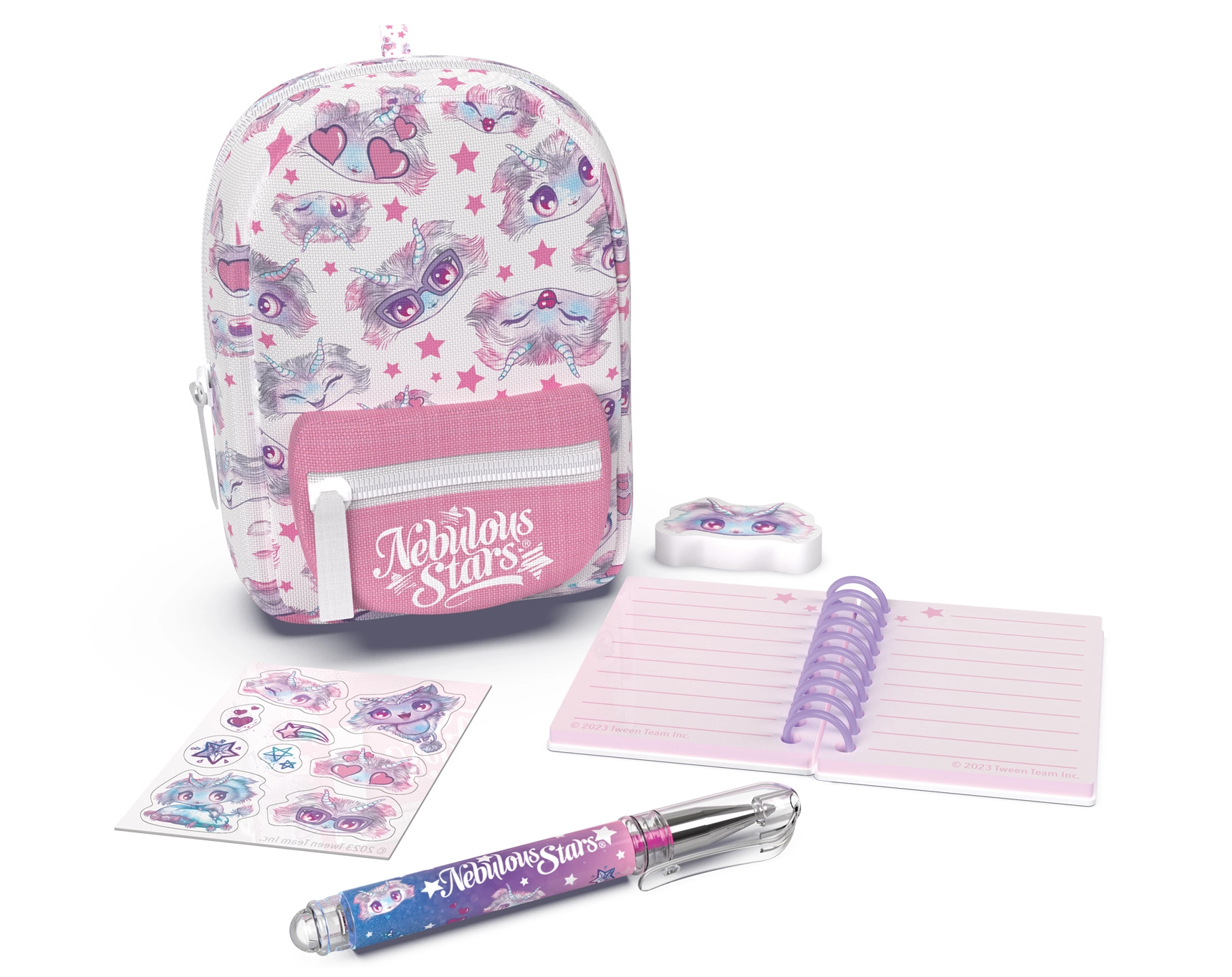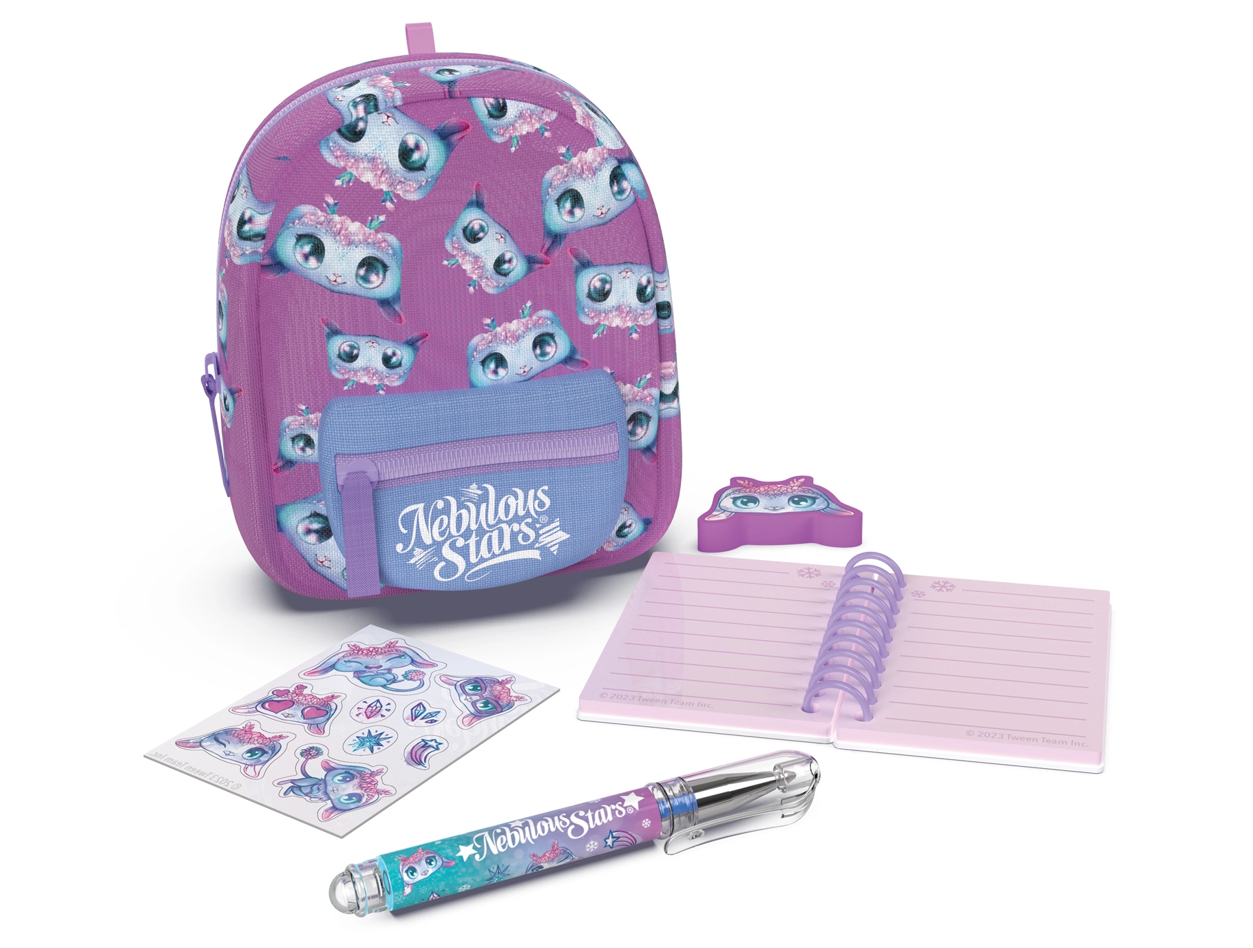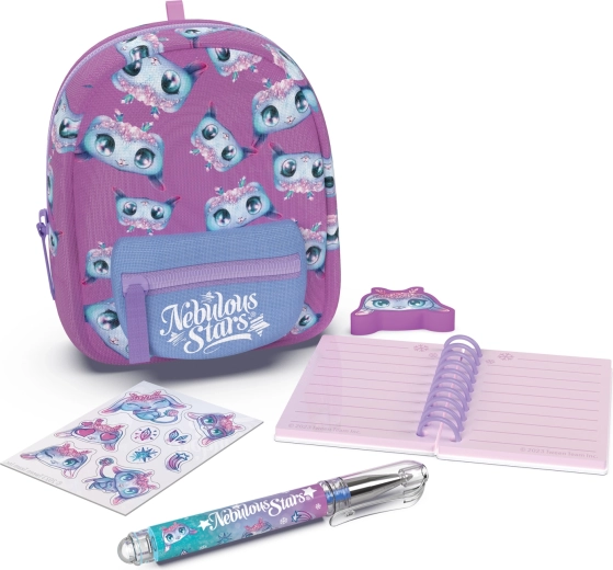 Stiilne mini seljakott NEBULOUS STARS kirjatarvete komplektiga on ideaalne väikestele loovusearmastajatele ja reisidele. Kompaktne mõõt 9 × 6 × 11 cm peidab endas kõik vajaliku: jooneline märkmik, pastapliiats, kustukumm, kleebised ja armas ripats. Saadaval on 3 värvivarianti – sinine, valge ja lilla.