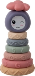 Pange kokku värviline torn armsa kassipoja peaga ja lillekujulise kübaraga. Kuus pastelses toonis rõngast erinevate pindadega kutsub avastama, muljuma ja lükkima. Mõned osad piiksuvad vajutamisel, stimuleerides kuulmist ja õpetades põhjus-tagajärg seost.