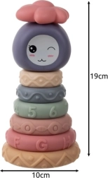 Rõngaste lükkimine ja stabiilse torni ehitamine treenib haaret, käe-silma koostööd ja kannatlikkust. Osade suurused järgivad loogilist järjestust ning laps õpib seadma neid suurimast väikseimani.