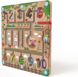 Magnetiline mängulaud Matemaatika 2Kids Toys on ideaalne abivahend esimesteks sammudeks numbrimaailma. Värvilised kuulid, numbrirajad ja taluteemalised illustratsioonid suunavad lapsi loomulikult avastama loendamist, sorteerimist ja võrdlemist. Tugev läbipaistev kate hoiab kõik osad sees, nii et mängimine on ohutu ja korras.