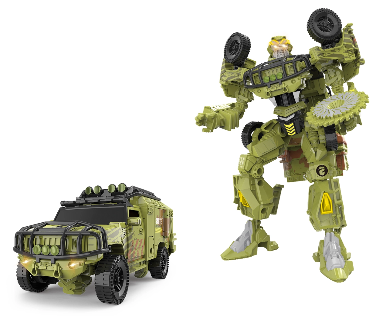 Lülitu kergesti roboti ja soomustatud maasturi vahel. Transformatsioon toetab loovat mängu ja kujutlusvõimet.