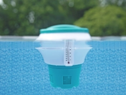 Integreeritud termomeeter võimaldab pidevalt jälgida vee temperatuuri, samal ajal kui doosija vabastab kemikaali ühtlaselt kristallselge vee tagamiseks.