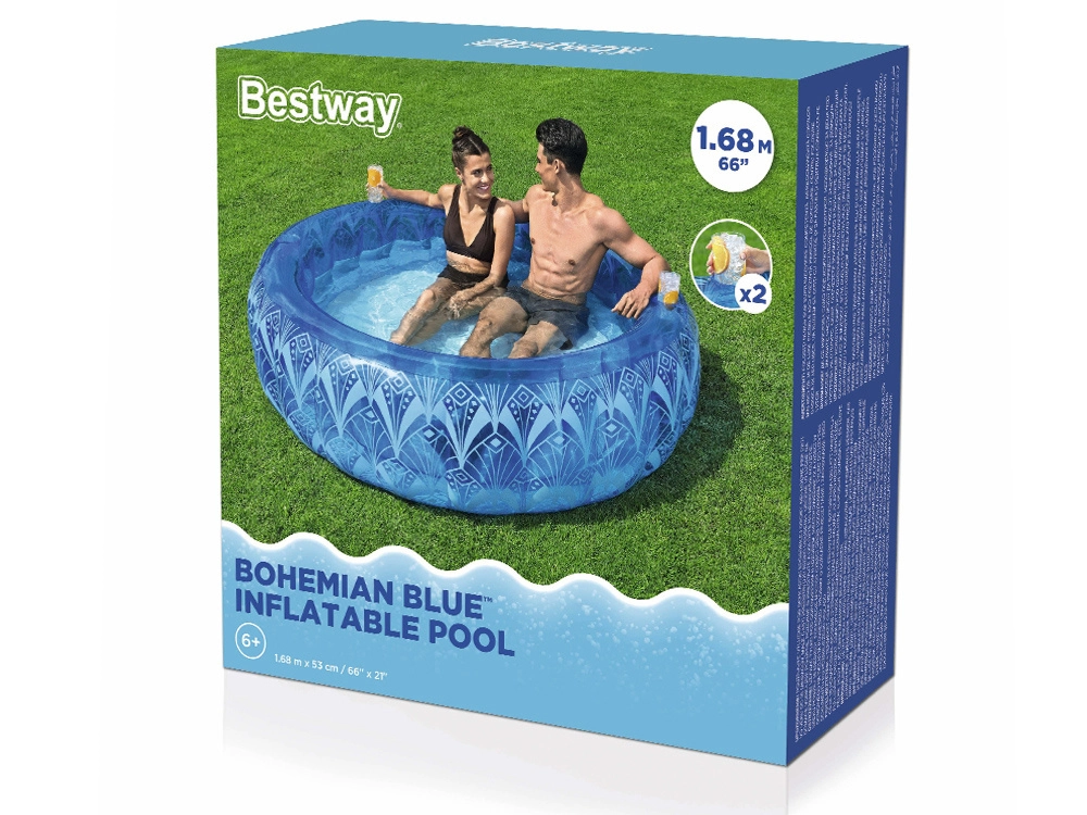 Kunstipärane boho muster ja praktilised joogitopsihoidjad loovad tõelise lõõgastusoaasi ja muretu meelelahutuse. Kiire ja lihtne paigaldus jätab rohkem aega lõbuks ja vähem ettevalmistusteks. Tühjendusventiili abil saab basseini mugavalt tühjendada, kokku panna ja järgmiseks korraks hoiustada.
