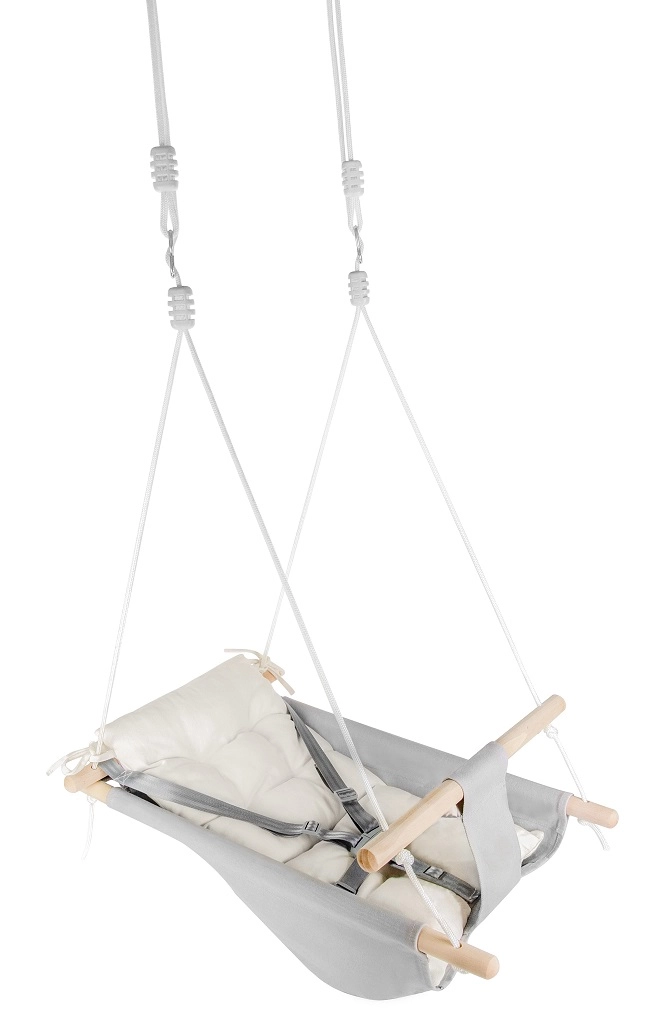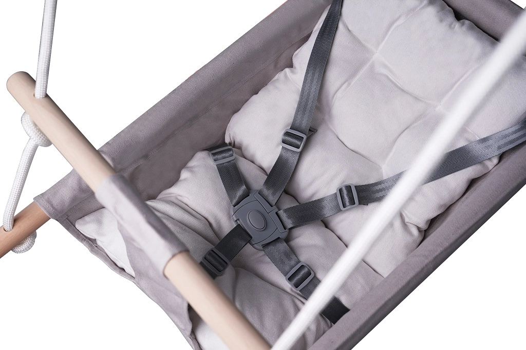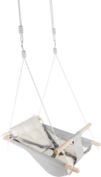 Valmistatud 100% puuvilla ja puidust tugede kombinatsioonist, kiik tagab turvalisuse tänu turvarihmadele.