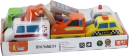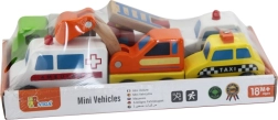 Avastage lõbus väikelastele mõeldud puidust sõidukite komplekt: takso, kiirabi, ekskavaator, politseiauto, tuletõrjeauto ja veok. Ümarad vormid ja vastupidav teostus teevad neist ideaalse valiku lastele alates 18. elukuust. Toetab peenmotoorika arengut, fantaasiat ja mänguoskusi igapäevastes seiklustes.
