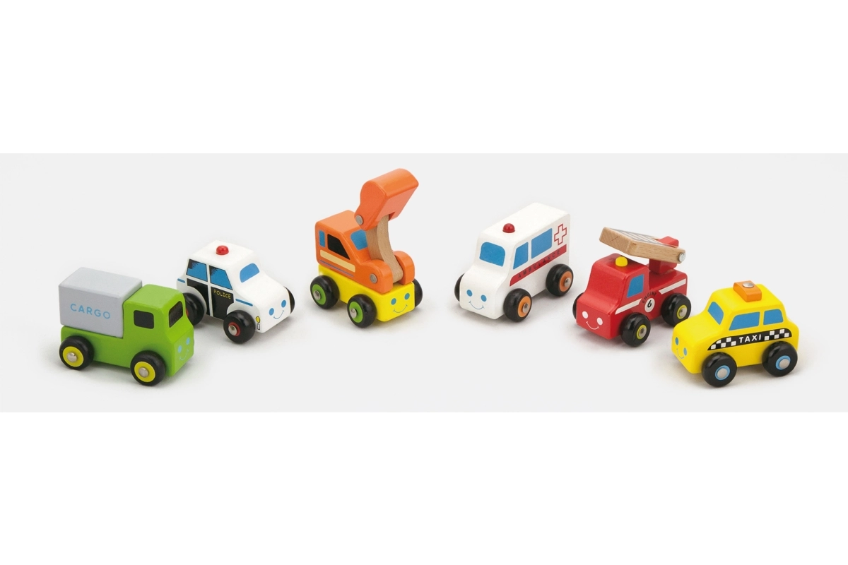 See värvikas 6 puidust auto komplekt pakub lastele lõputuid mänguvõimalusi – päästeoperatsioonidest kuni ehitusplatsini. Iga sõiduk on valmistatud kvaliteetsest puidust sileda pinnaga ja ohutute servadega, et väikesed käed saaksid neid mugavalt ja turvaliselt haarata.