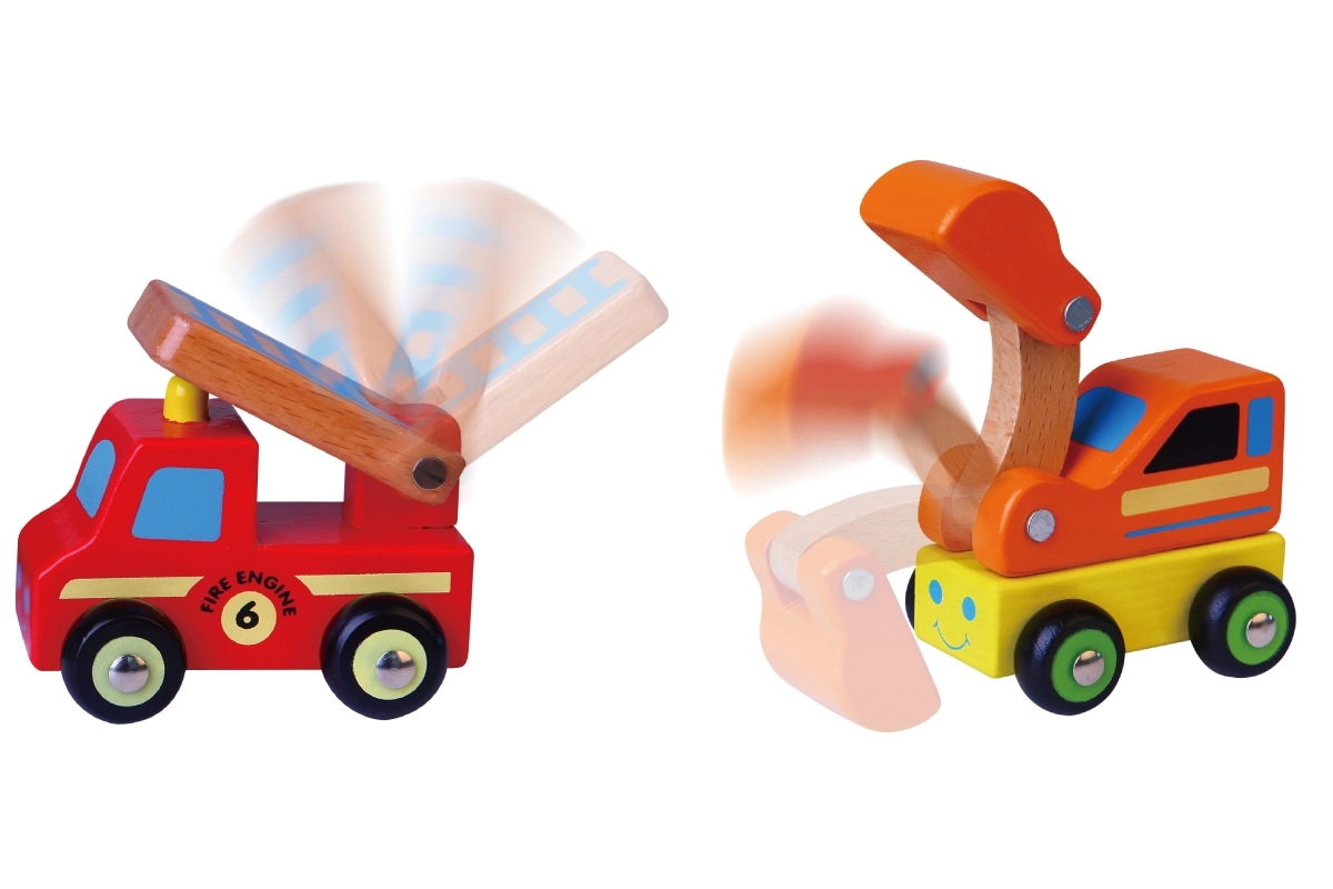 Alates tuletõrjeautost kuni ekskavaatorini – erksad värvid ja kergesti äratuntavad vormid ergutavad kujutlusvõimet ja õppimist mängu kaudu.
