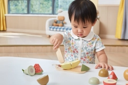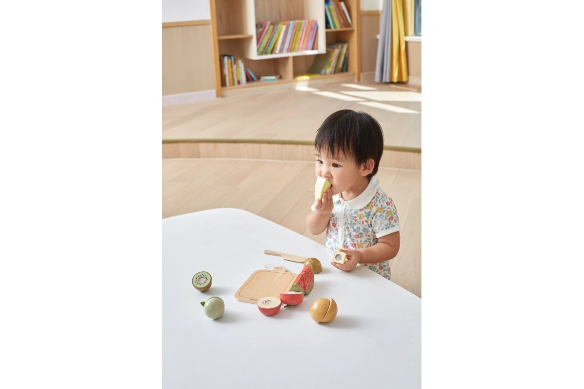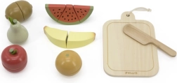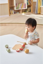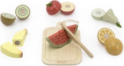 Selle puuviljalõikamise komplektiga saavad lapsed veeta tundide viisi lõbusalt aega ja samas õppida. Puidust noaga saavad nad puuvilju turvaliselt lõigata ja oma fantaasia järgi kombineerida.