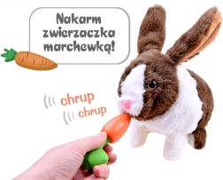 Lihtsa kasutuse saab selgeks ka väiksem laps: lülita ON/OFF, vajuta õrnalt küljele ja vaata, kuidas jänku ellu ärkab. Porgandi suhu asetamisel kostab ehe krõmpsumine, mis muudab mängu veelgi realistlikumaks.