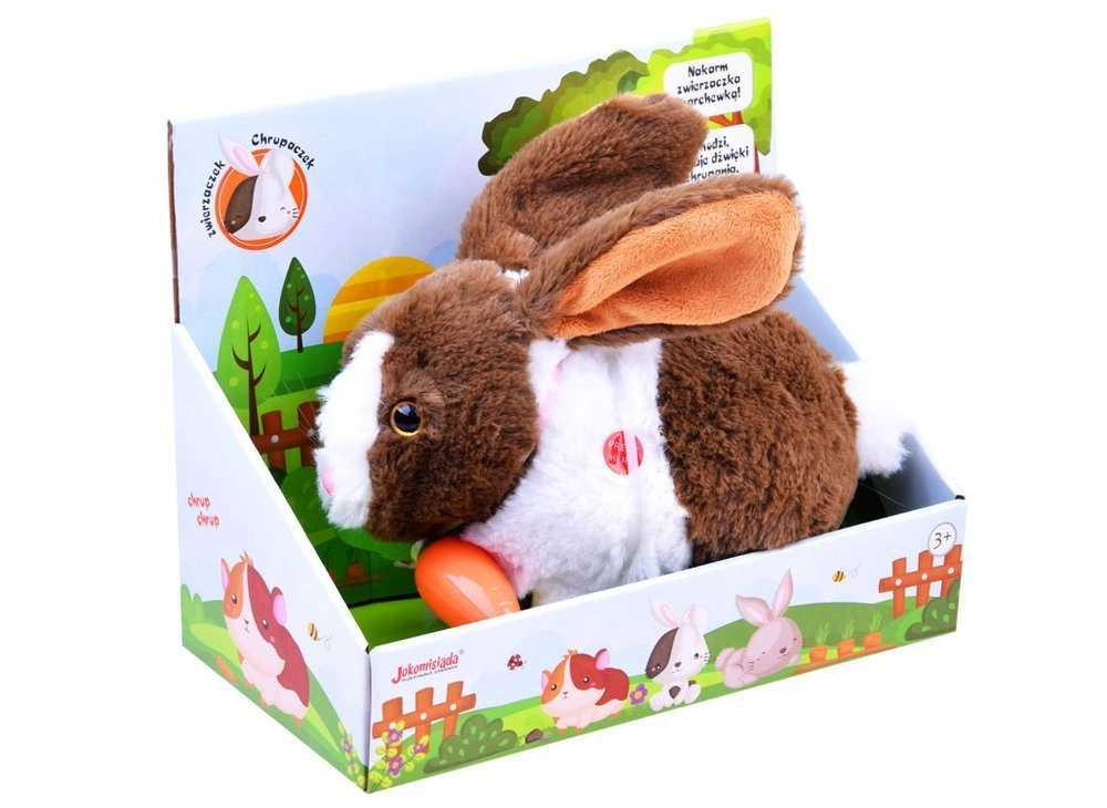 Kaasaolev porgand käivitab krõmpsumise heli ja julgustab last loomakesega suhtlema hoolitsuse ja mängu kaudu.