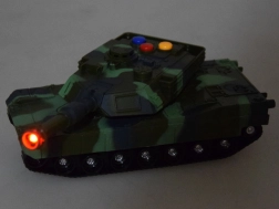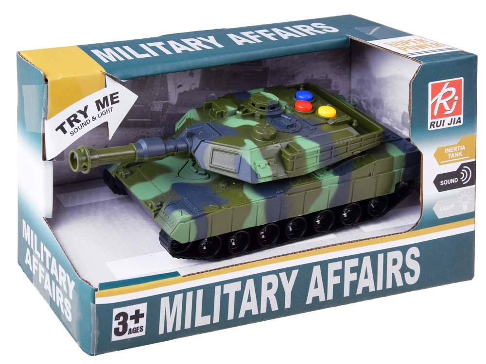 Sõjaline tank on valmistatud kvaliteetsest plastist, mis tagab realistliku ilme ja vastupidavuse. Tankil on kolm värvilist nuppu, mis simuleerivad realistlikke helisid, nagu sõit, ettevalmistus ja lasu või sireen. Iga nupu vajutusega tekib autentne lahinguõhkkond.