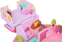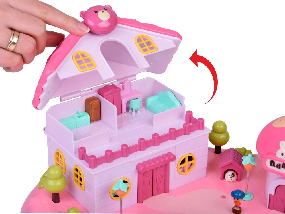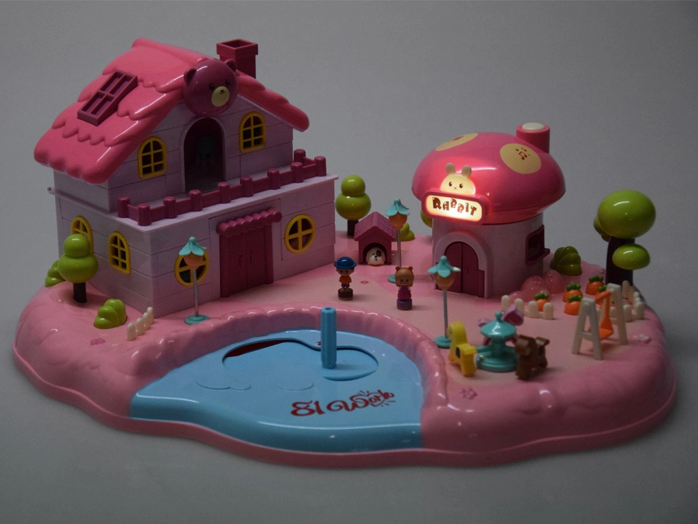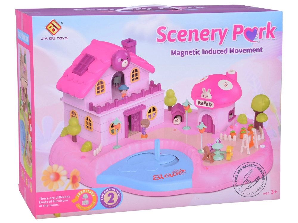 Avasta võluloss aias: avatud majake kärbseseene-kujulise poega, tiigi ja juhtnupuga ning mänguväljakuga kutsub lapsi lõputuid lugusid jutustama. Peidetud magnetinduktsioon paneb liikuma figuurid ja stseenidetailid – liigu vaid juhtnupuga tiigil ja lase neil suunduda aeda, mänguväljakule või poodi.