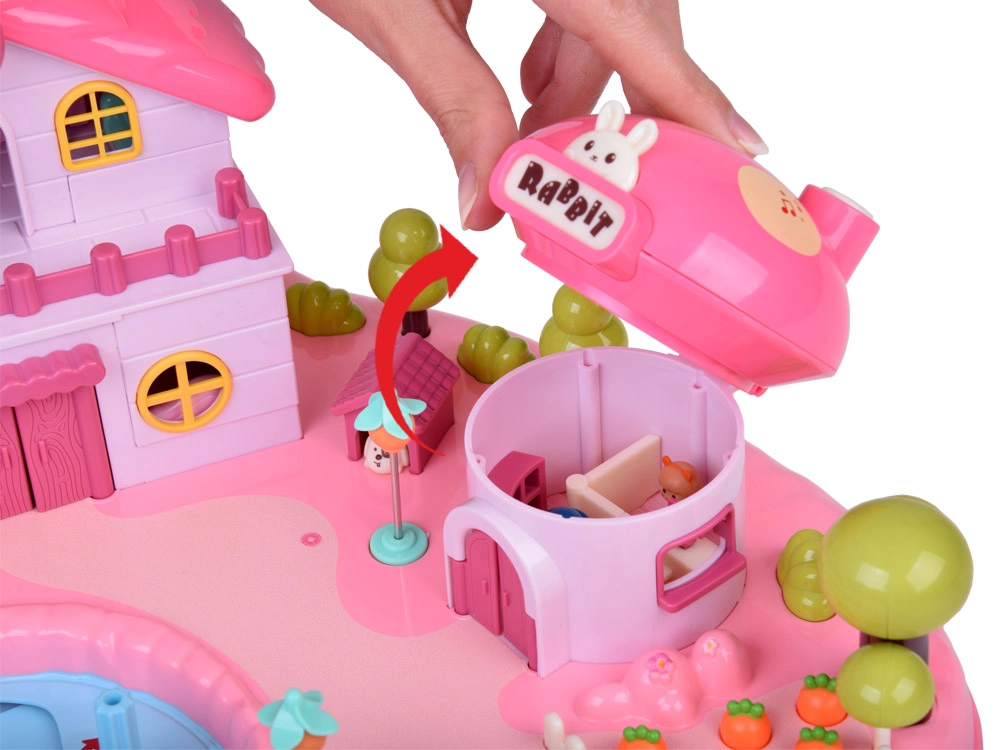 Nupud katusel/korstnal aktiveerivad efektid; taustvalgustusega kiri RABBIT vilgub rütmis. Ideaalne elava mänguõhkkonna loomiseks.