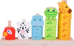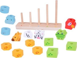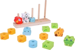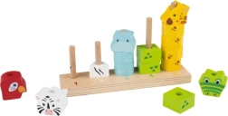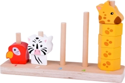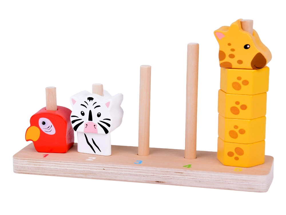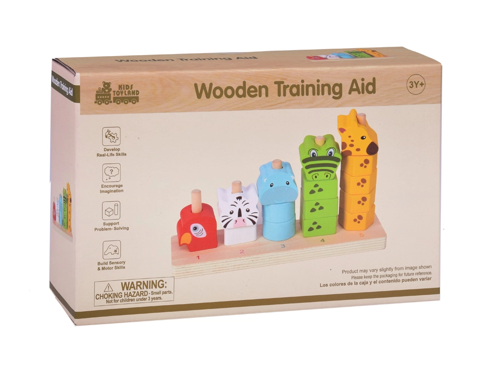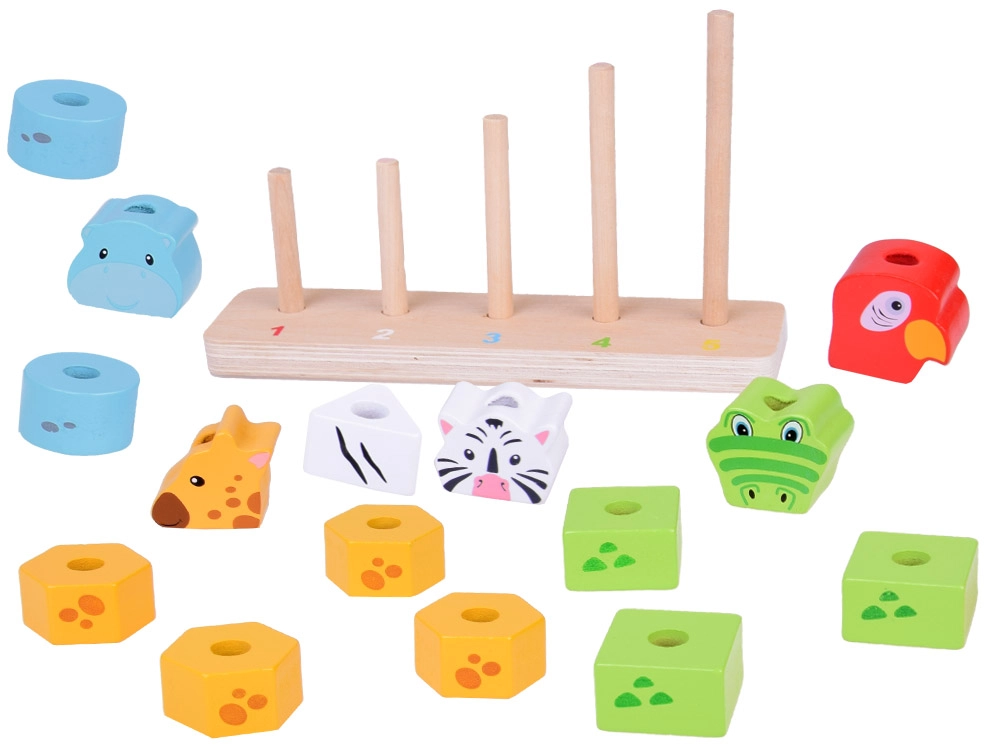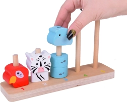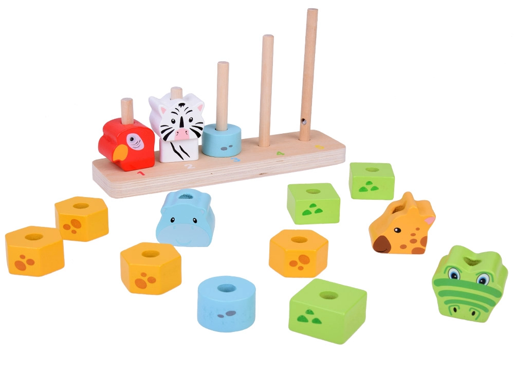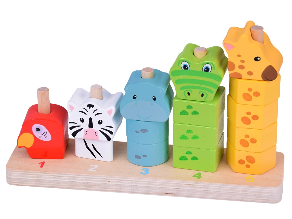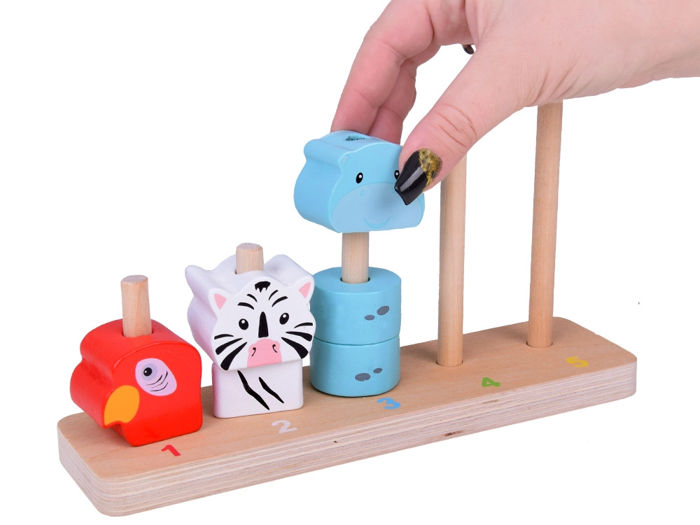 See kvaliteetne puidust virnastamismäng ühendab lõbu ja õppimise. Lapsed laduvad värvilisi tükke ja loovad loomad suuruse järgi väiksemast suuremani, omandades loomulikul viisil loendamise 1–5, värvide ja kujundite tundmise ning harjutades silma-käe koordinatsiooni. Painduvad postid alusel suurendavad mängu ohutust.