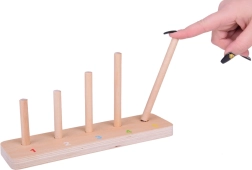 Värviliste tükkidega toimetamine arendab haaret, täpsust ja silma-käe koordinatsiooni iga tükikese postile asetamisel.