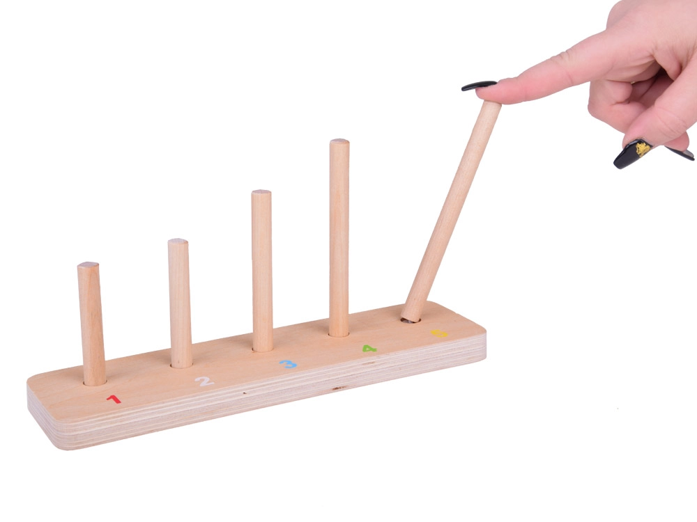 Iga post vastab numbrile 1–5 ja aitab lastel mõista järjekorda ning hulka loomakeste ladumisel.