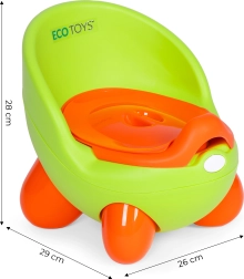 ECOTOYSi laste potttool pakub funktsionaalset disaini, mis on lastele atraktiivne ja toetab iseseisvust potil käima õppimisel. Tänu stabiilsusele ja ergonoomilisele seljatoele pakub see maksimaalset mugavust ning soodustab õiget kehahoiakut.