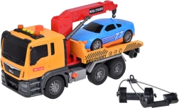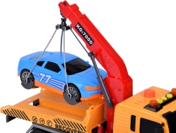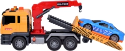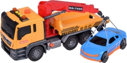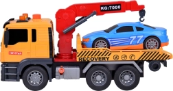 Komplekti kuulub ka sinine sportauto, mis sobitub puksiirautoga ideaalselt. Kogu mänguasi on teostatud realistlikes värvides – kollane, hall, punane ja sinine.