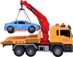 Suur mängu puksiirauto valgus- ja heliefektidega ning sinise võidusõiduautoga on ideaalne väikestele autohuvilistele! See komplekt pakub realistlikke detaile ja funktsioone, mis lasevad lastel saada teede kangelasteks.