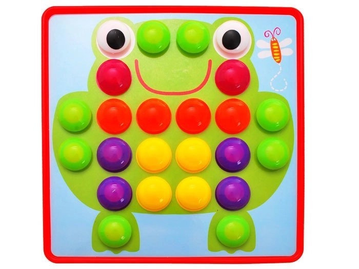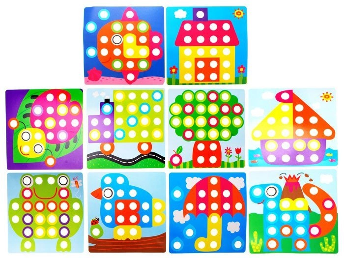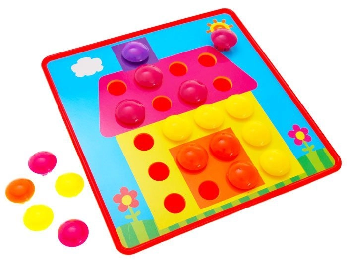 Lapsed panevad värvilistest nööpidest kokku kirkaid pilte, harjutavad haaret, täpsust ja silma–käe koordinatsiooni ning arendavad kujutlusvõimet.
