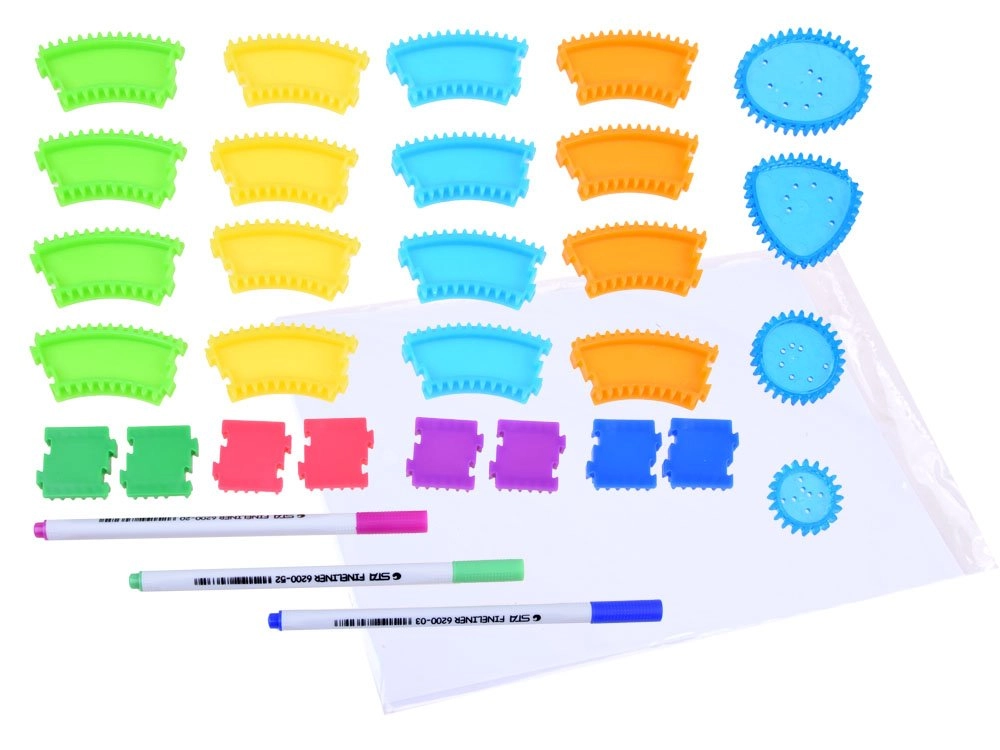 Komplekt on ideaalne kannatlikkuse, käe täpsuse ja geomeetria põhitõdede arendamiseks. Tänu lihtsale põhimõttele – pliiatsi juhtimine mööda hammasrattaid – on joonistamine kerge ja haarav, sobides nii algajatele kui ka väikestele kunstnikele.