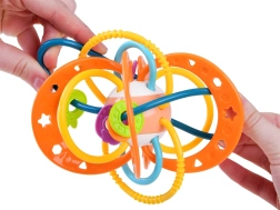 See värviline närimislelu koos kõrinaga pakub beebile palju sensoorseid stiimuleid. Põimunud aasadest on väikestel käekestel lihtne haarata, vahelduvad tekstuurid masseerivad igemeid ja leevendavad hammaste tulekust tingitud ebamugavust. Kerge konstruktsioon sobib suurepäraselt nii koju kui ka teele kaasa.