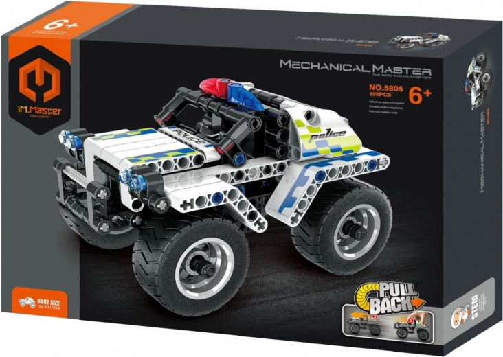 iM.Master ehituskomplekt pakub lastele tunde loovat lõbu. 199 vastupidavast detailist saab hõlpsalt kokku panna detailse politseiauto, mis liigub pärast vedrumehhanismi kerimist hoogsalt edasi. Lapsed harjutavad kujutlusvõimet, loogilist mõtlemist ja kannatlikkust ning saavad ehitada nii juhendi järgi kui ka luua oma originaalseid mudeleid.