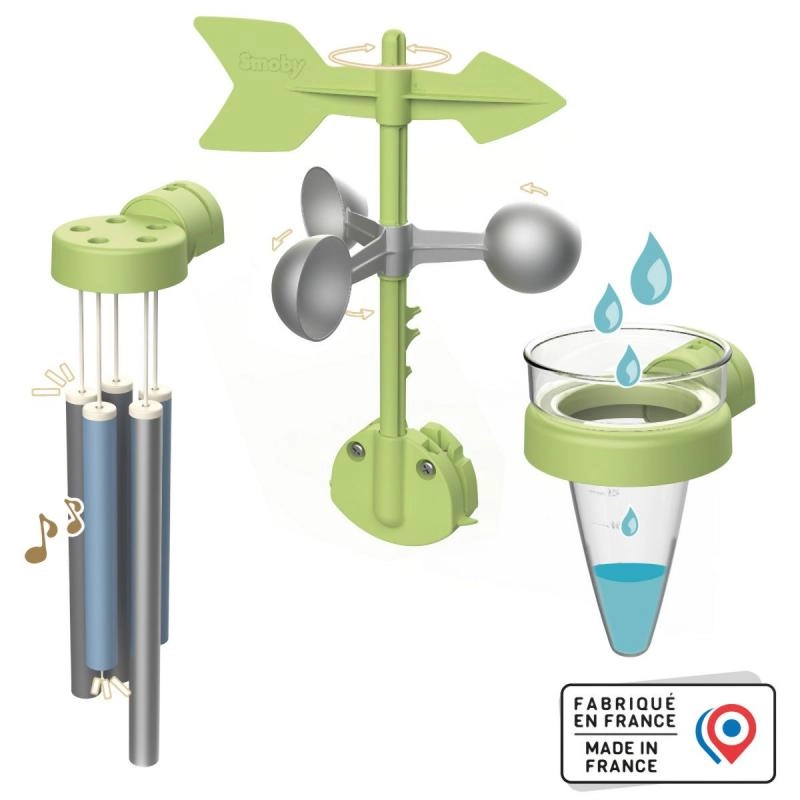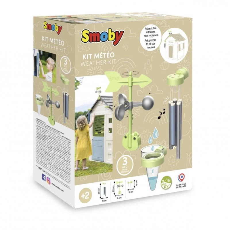 Avastage ilma otse aias SMOBY mängumajade komplektiga. Lapsed naudivad lõbusat teadust tänu tuulelipule/anemomeetrile, sademetemõõturile ja tuulekellale. Komplekt on ühilduv kõigi SMOBY mängumajadega, kinnitub lihtsalt ja on valmistatud UV-kindlast plastist, mis peab suurepäraselt vastu ilmastikule ja pleekimisele.