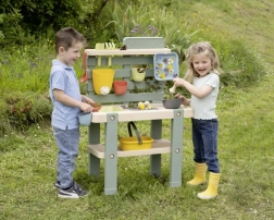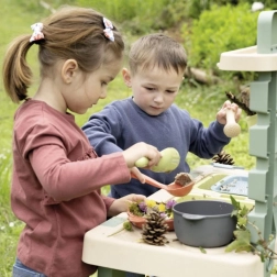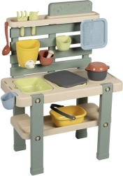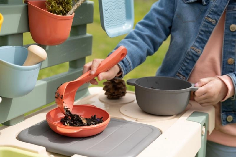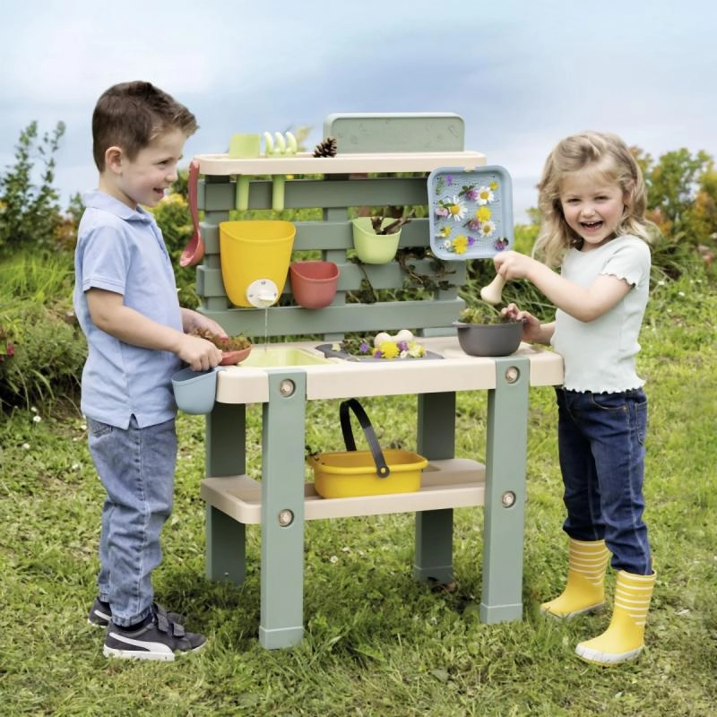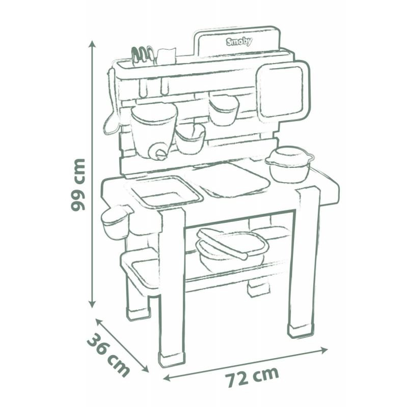 See vastupidav välisköök looduslikes toonides pakub lastele ehtsat keskkonda mängimiseks ja katsetamiseks vee, liiva ja loodusmaterjalidega. Eemaldatavad kastid lihtsustavad käsitlust ja koristust, samal ajal kui pööratava sulguriga kraan aitab vett doseerida ja arendab peenmotoorikat.