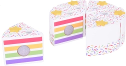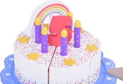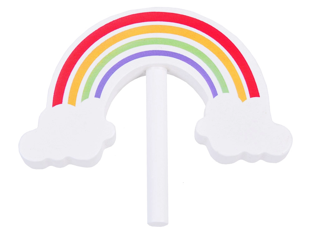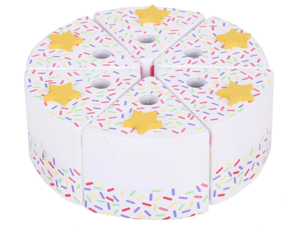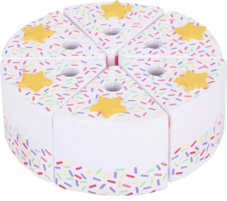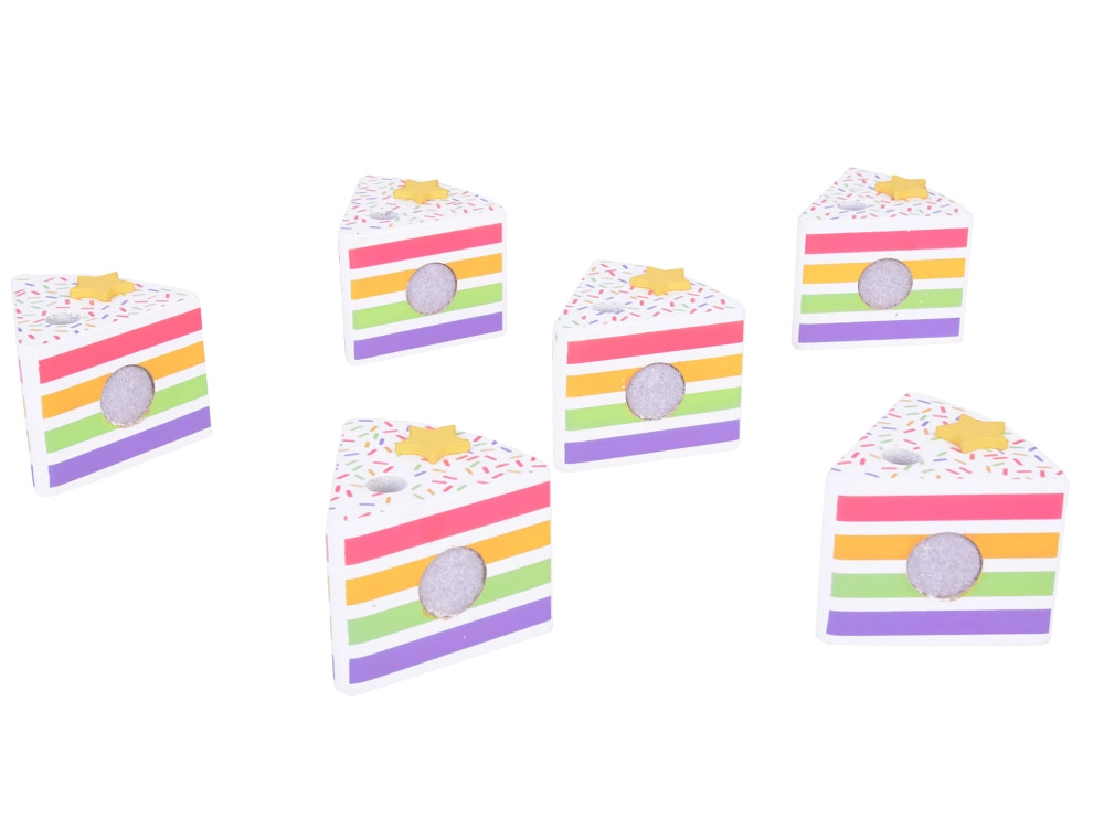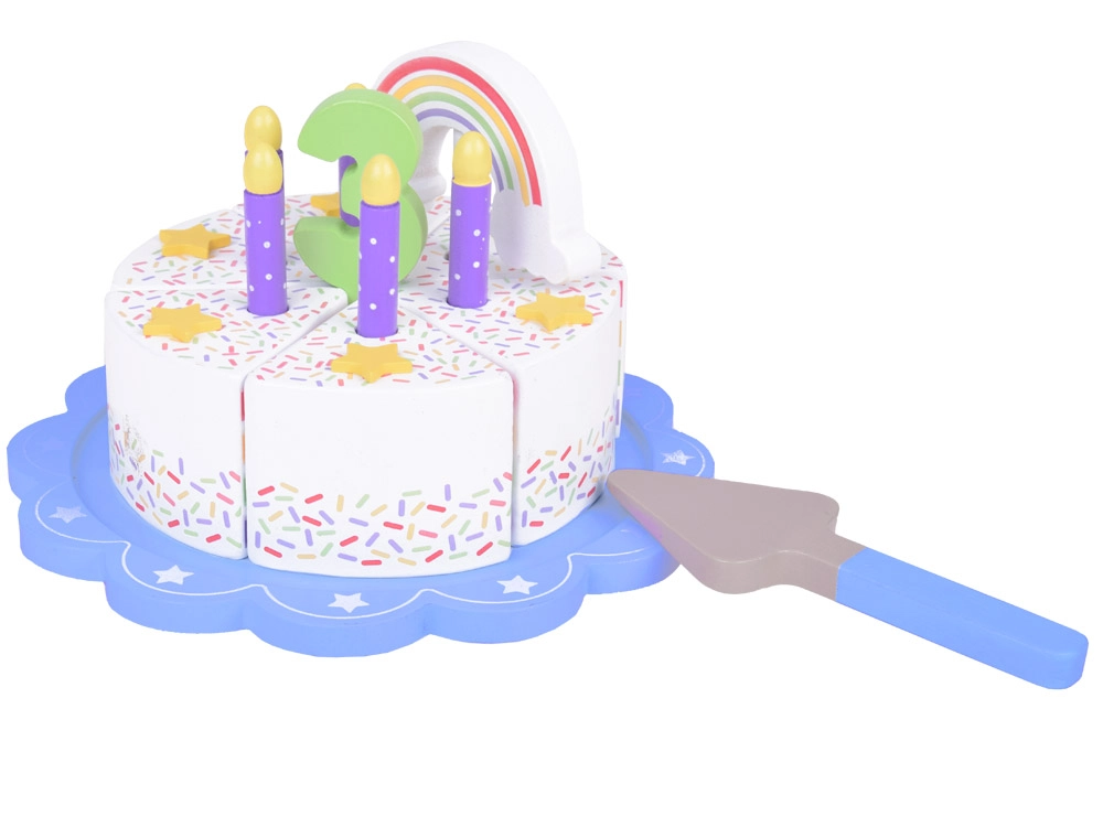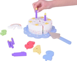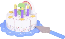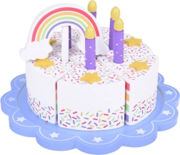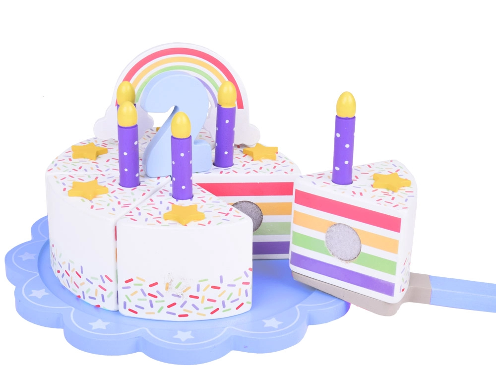 Tordi peal on eemaldatav värviline vikerkaar, mis lisab kogu komplektile võlu. Igal torditükil on koht küünlale, muutes selle ideaalseks valikuks sünnipäevapeo mängimiseks.
