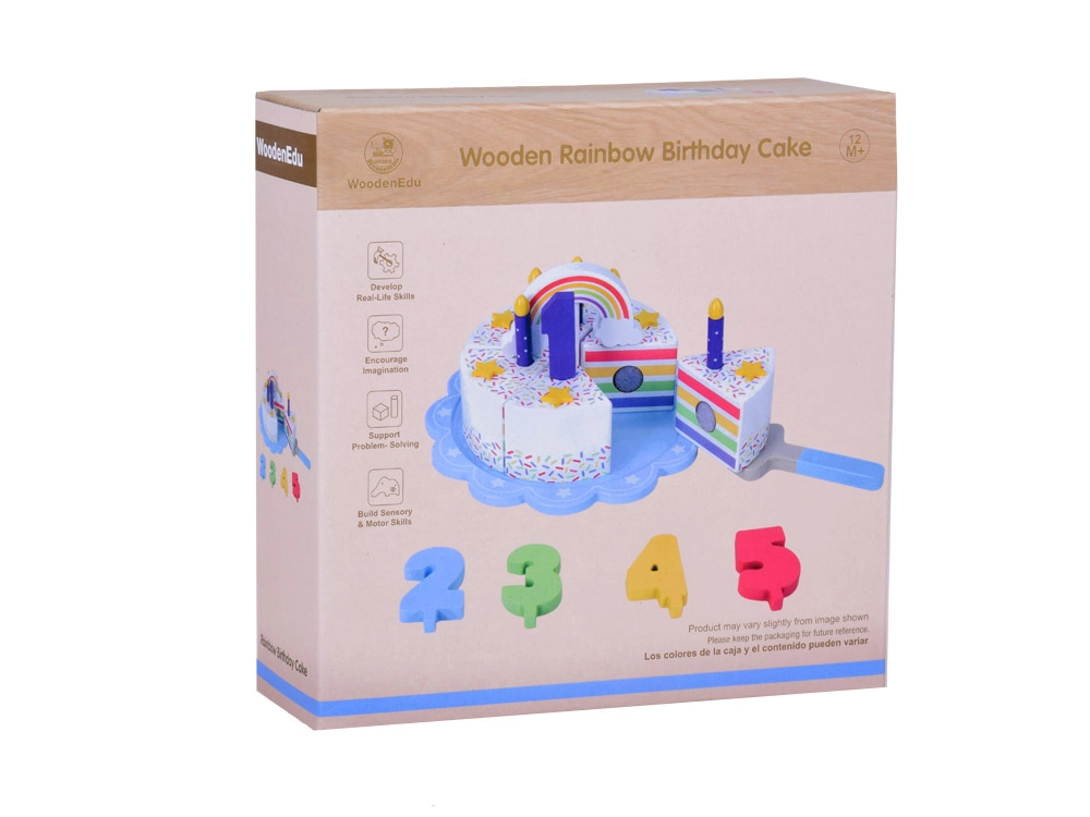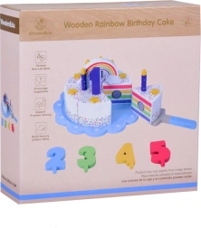 Tutvustame puidust vikerkaarega sünnipäevatorti, mis pakub lastele lõputuid mängutunde. See mänguline tort koos kuue värvilise tükiga on nagu tõeline maius, mida lapsed saavad lõigata ja uuesti kokku panna.