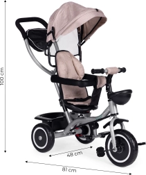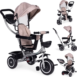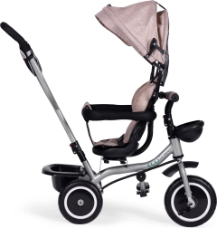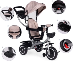 Praktilise varustuse hulka kuuluvad tagumine korv, eesmine korvike mänguasjale ja lukuga tasku telefoni või võtmete jaoks. Varikatuse, piirde ja lükkesanga järk-järgulisel eemaldamisel kohandub kolmerattaline lapse kasvavate oskustega kuni iseseisva sõiduni.