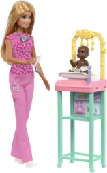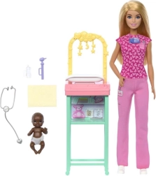Avastage arsti seikluste maailm Barbie nukuga lastearstina! See mängukomplekt sisaldab roosas arsti riietuses Barbie nukku ja tema väikest patsienti. Lapsed saavad nautida rollimängu, mis arendab hooldus- ja hooleoskusi.