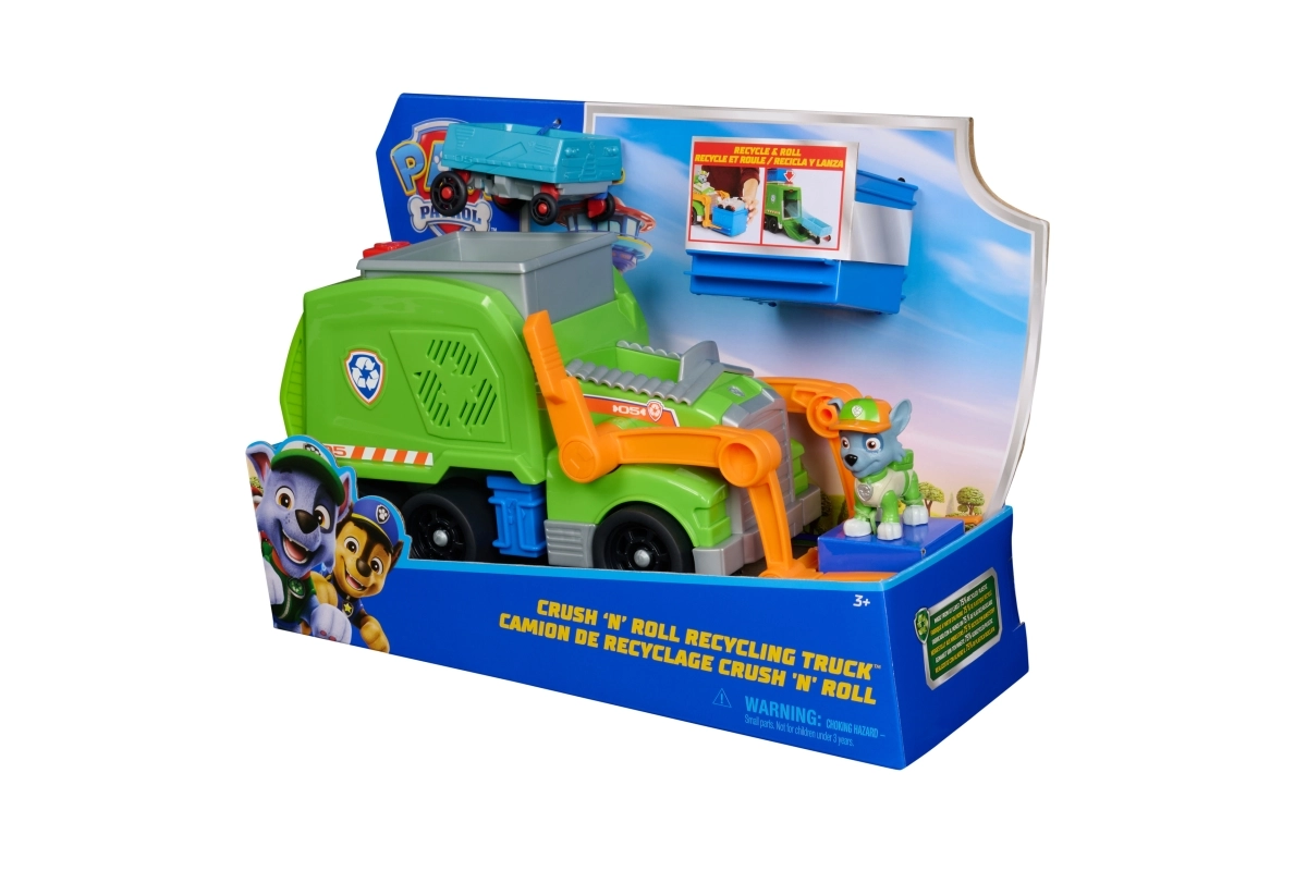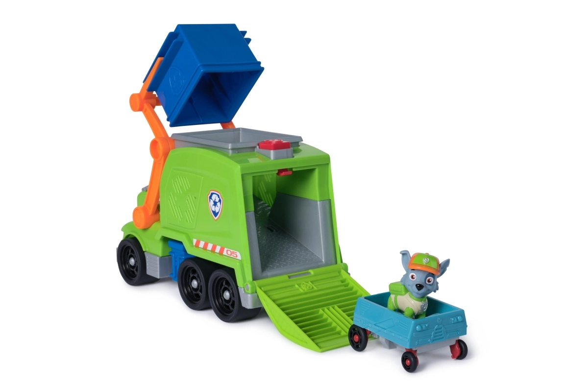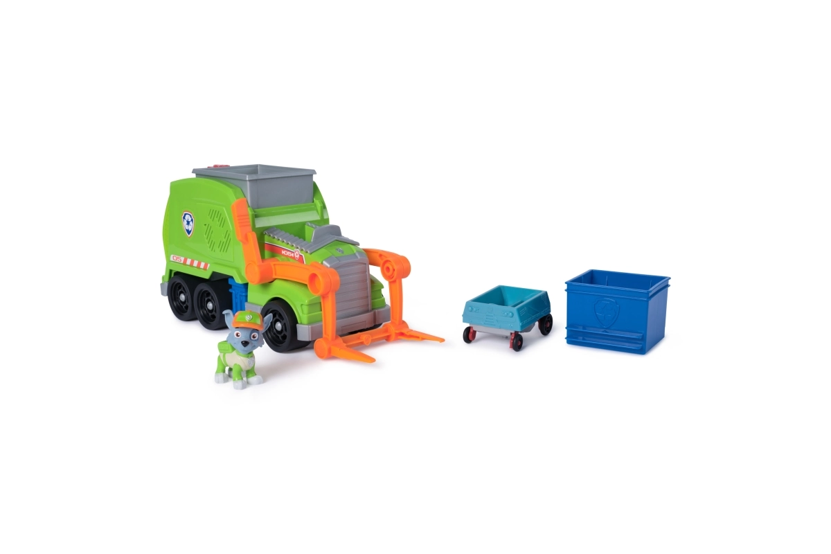 See roheline jäätmeauto koos Rockyga toob vahvad taaskasutuse seiklused. Lapsed saavad panna figuuri juhiistmele, haarata esiharkidega sinise konteineri ja tõsta selle kangi abil laadimiseks üles. Nupu vajutamisel langeb tagumine ramp ning kortsus sõiduk muutub mini-autoks, millega Rocky saab sõita.