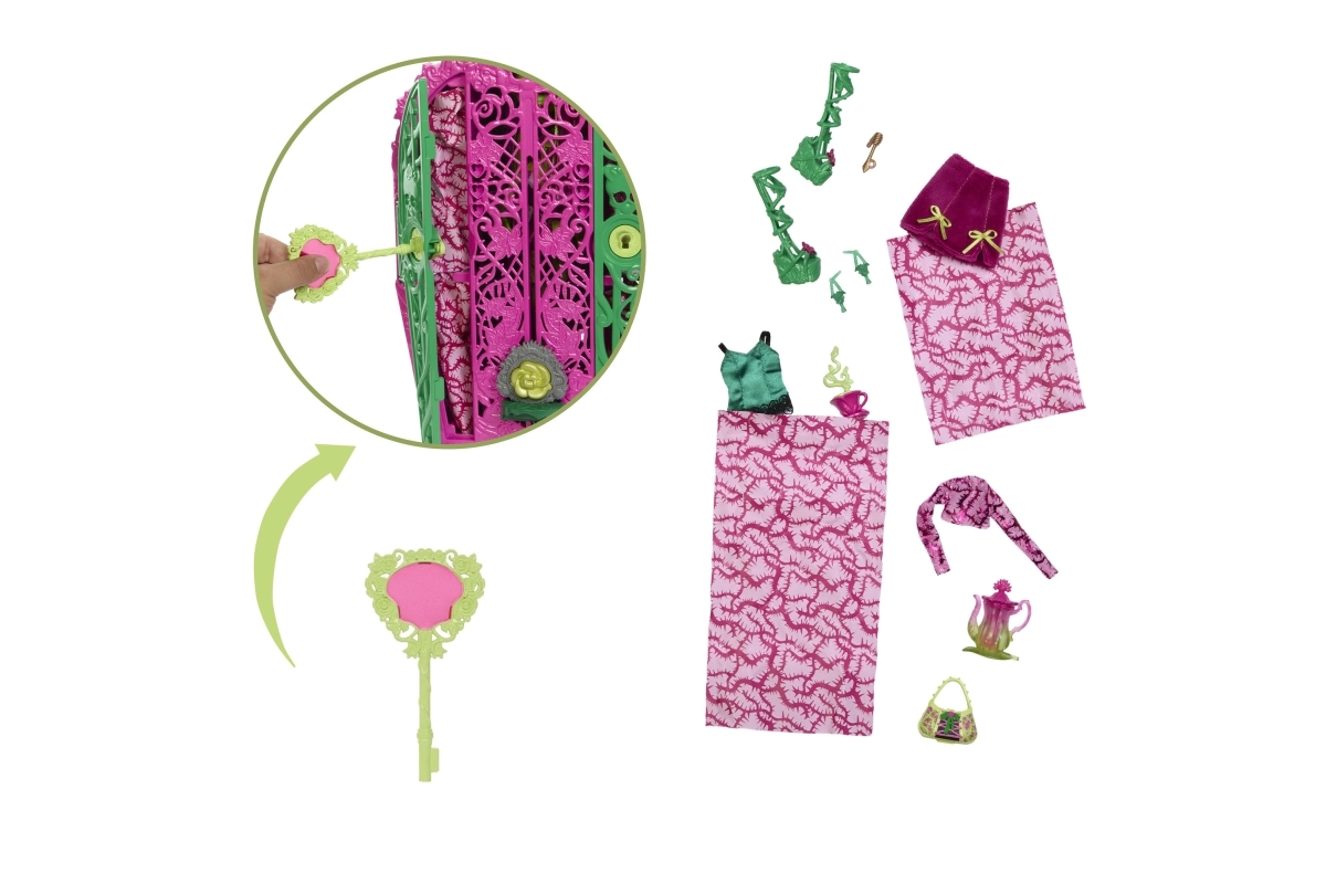 Astu tumekütkestavasse MONSTER HIGH maailma ja avasta Ultimate Secrets – Aiasaladused koos nuku Venus McFlytrapiga. Mängi detektiivi: „võlu“luubivõtmega otsi kaardilt sümboleid ja ava samm-sammult peidetud saladusi. Iga avastus toob uusi rõivaid ja aksessuaare õõvastavalt elegantseks aiapeoks.