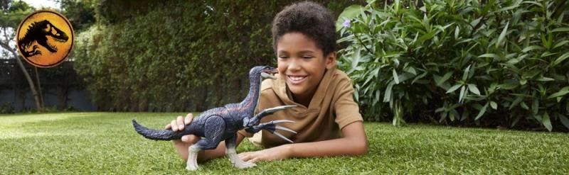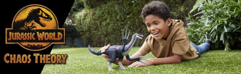 Kultussarjast JURASSIC WORLD pärit Therizinosaurus ärkab ellu detailselt kujundatud tegevusfiguurina, mille funktsioonid rõõmustavad nii väikseid kui suuri dinosaurusesõpru. Saba pööramisel käivitub dünaamiline löökrünnak ja lõualuude avanemine, mida saadavad autentsed helid. Ülakeha liigub külgsuunas, nii et pikad küünised sööstavad tegevusse.
