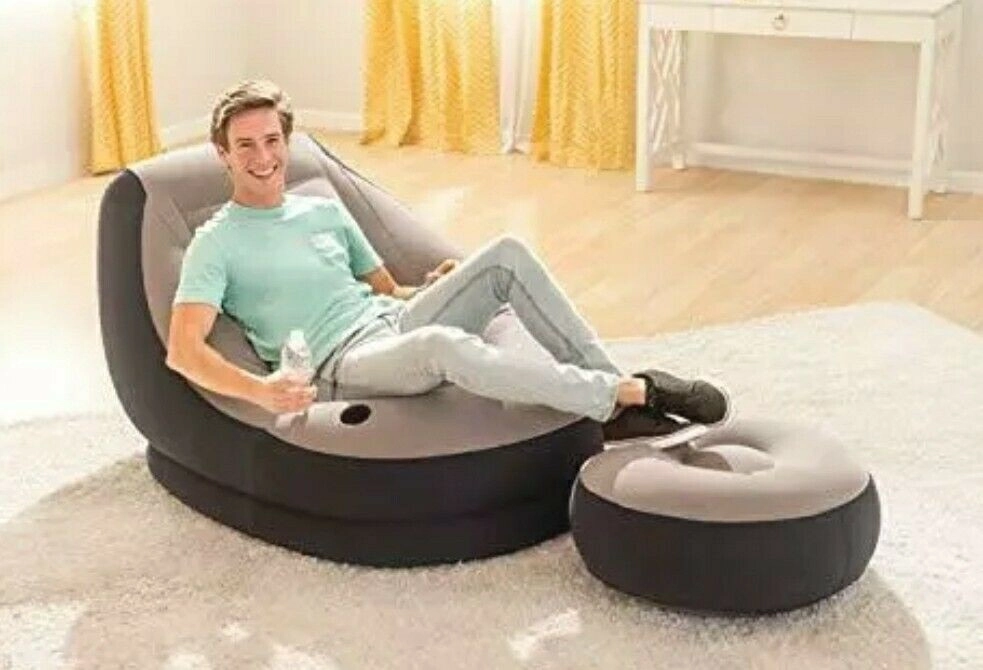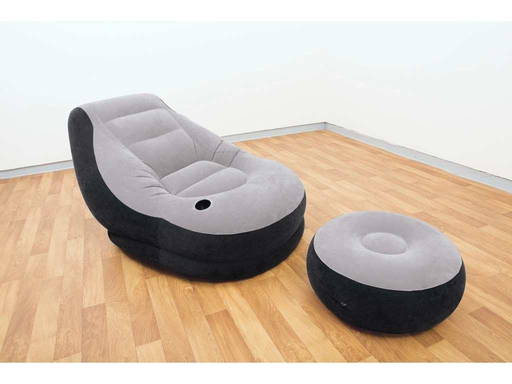 Naudi puhkust kodus ja õues selle mugava jalatoega täispuhutava lamamistooliga brändilt INTEX. Pehme veluurkate, vastupidav PVC ja stabiilne konstruktsioon tagavad maksimaalse mugavuse. Praktiline joogihoidik ja kiirtühjendusventiil teevad toolist ideaalse valiku terrassile, rõdule, aeda ja ka telkimiseks.