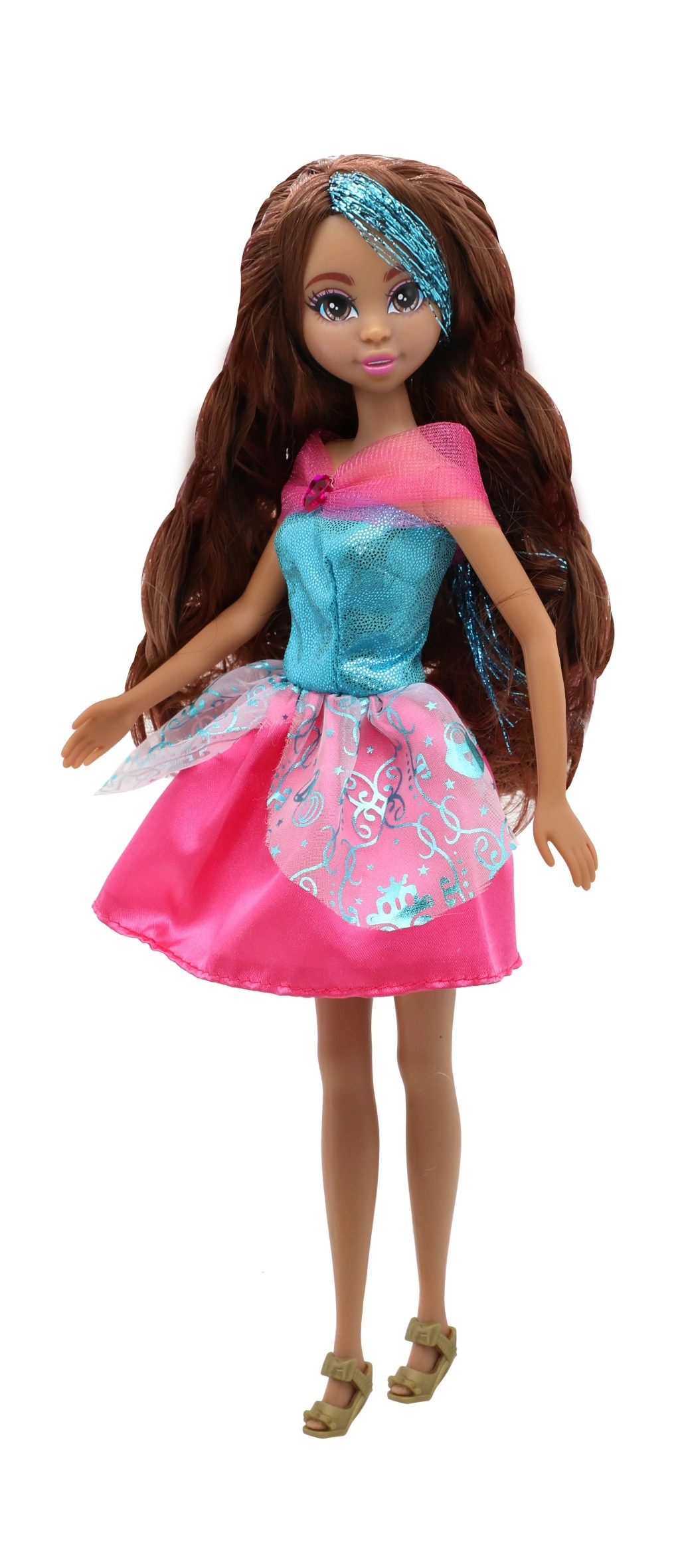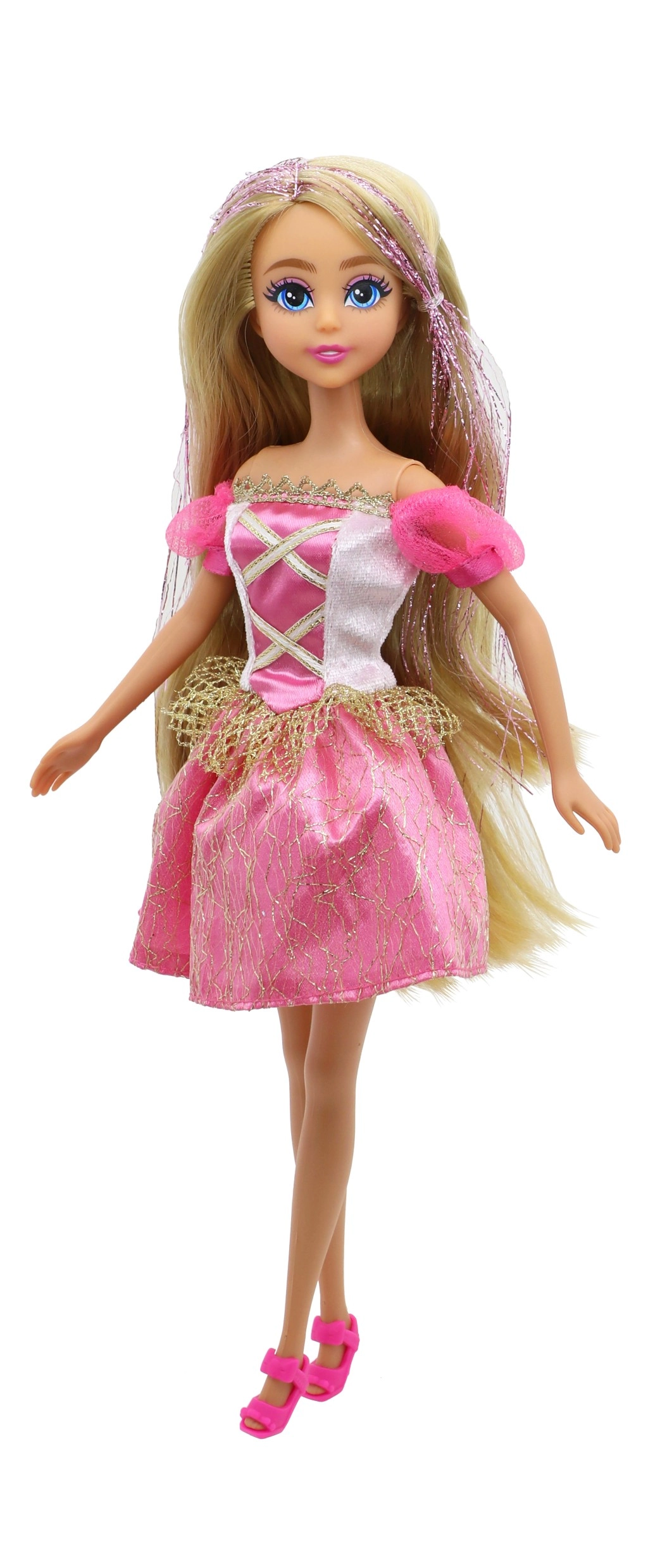 Sädelev kleit, peened detailid ja sobivad kingakesed teevad nukust tõelise printsessi, kes toob sära igasse lastetuppa.
